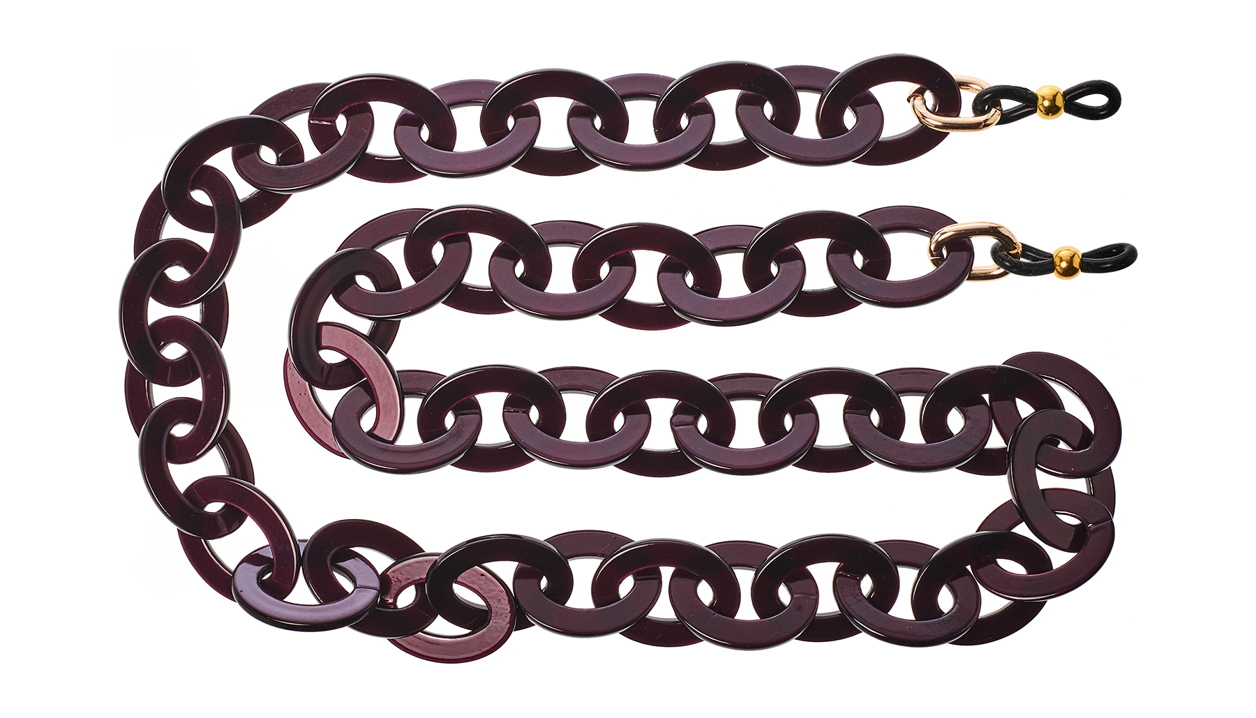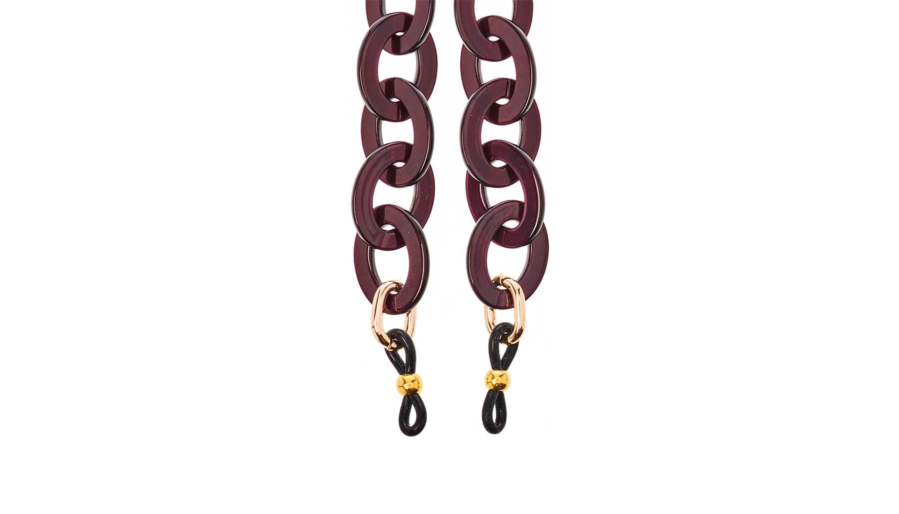 Are you familiar with our frame chains? They are now available in our own acetate colors as well. So, they fit with colors from our glasses! The acetate gives the chains a rich and luxurious appearance. And the wearing comfort of the light acetate is amazing. The Acetate Chains always come with a metal ring which you can attach to the lobster claws. You can easily hang your glasses through the metal ring, or you can attach the silicone loops to your glasses. Two in one!