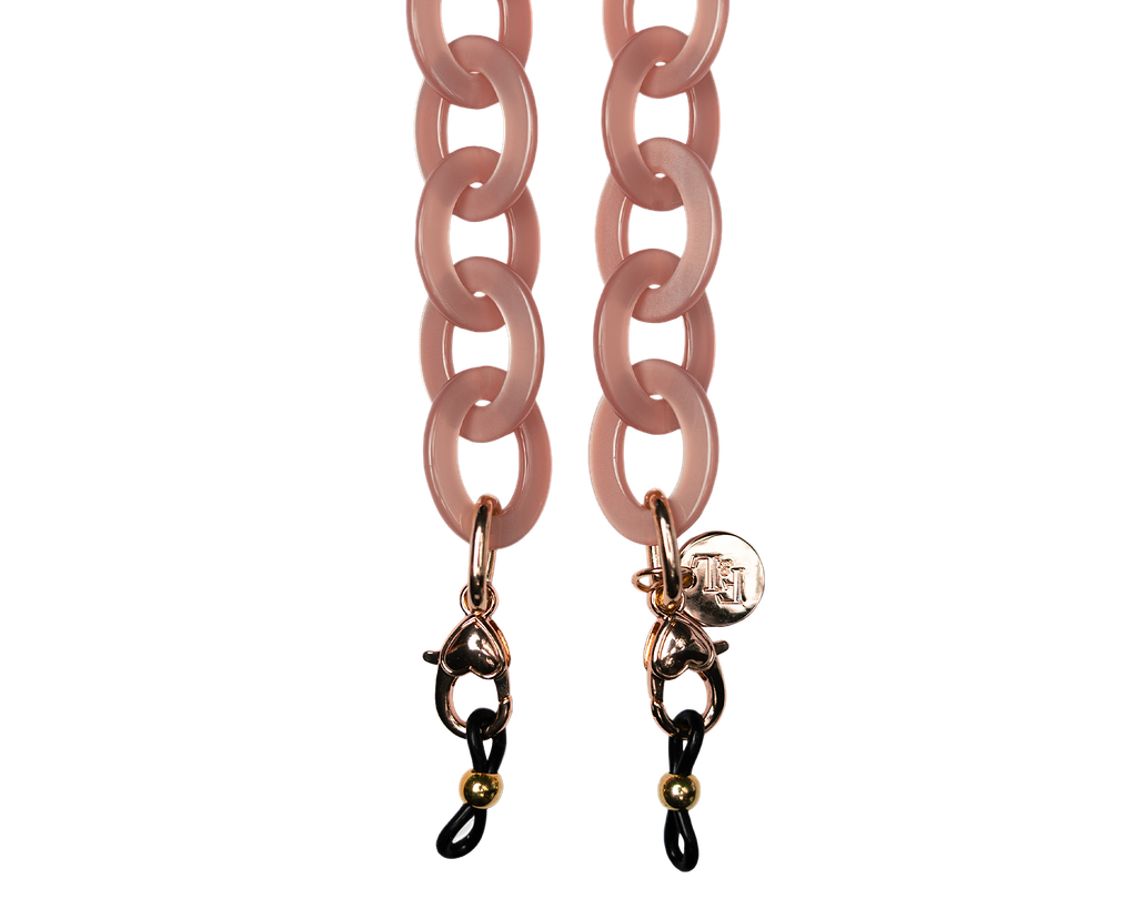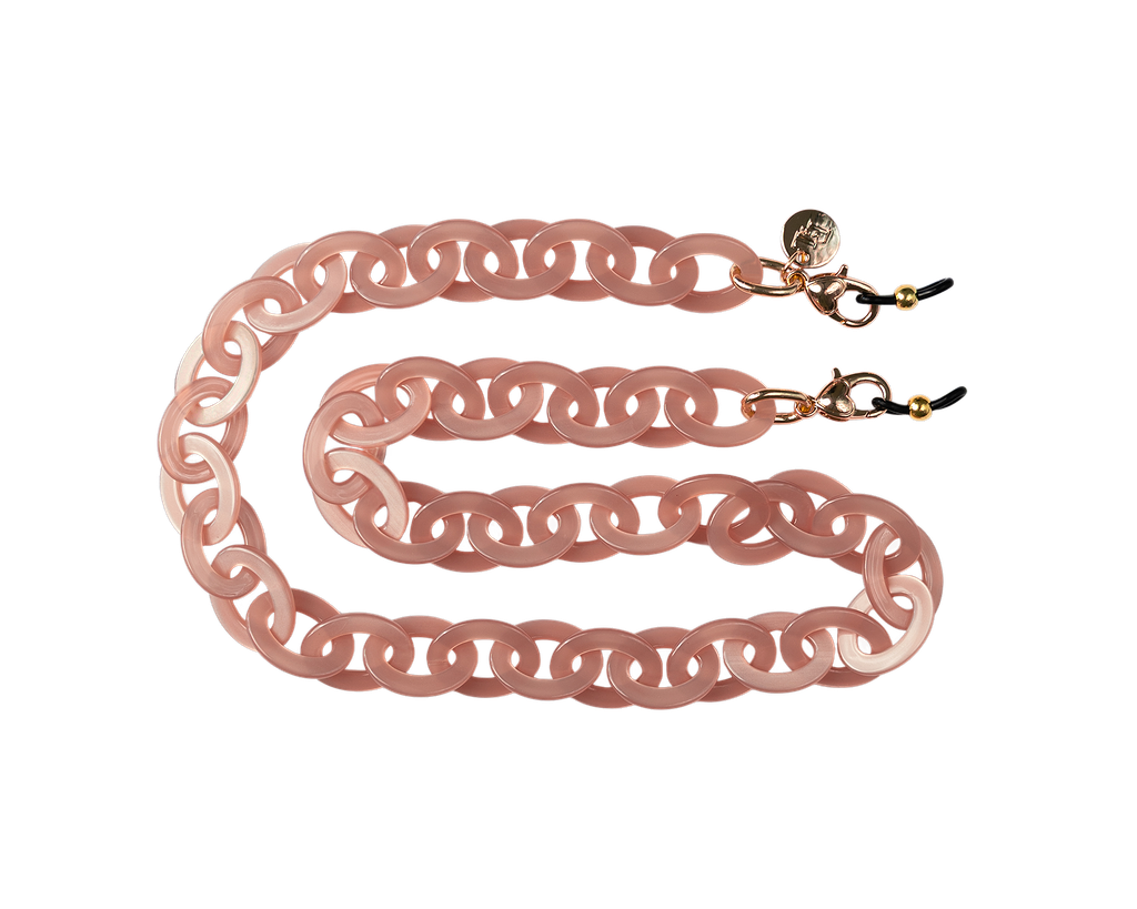 Are you familiar with our frame chains? They are now available in our own acetate colors as well. So, they fit with colors from our glasses! The acetate gives the chains a rich and luxurious appearance. And the wearing comfort of the light acetate is amazing. The Acetate Chains always come with a metal ring which you can attach to the lobster claws. You can easily hang your glasses through the metal ring, or you can attach the silicone loops to your glasses. Two in one!