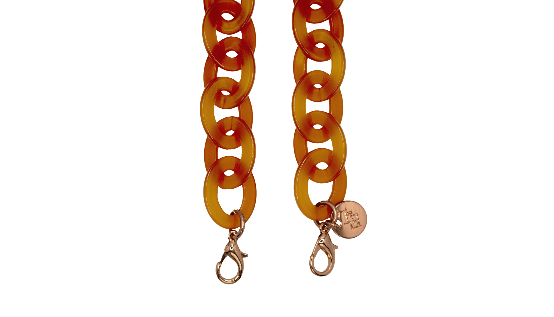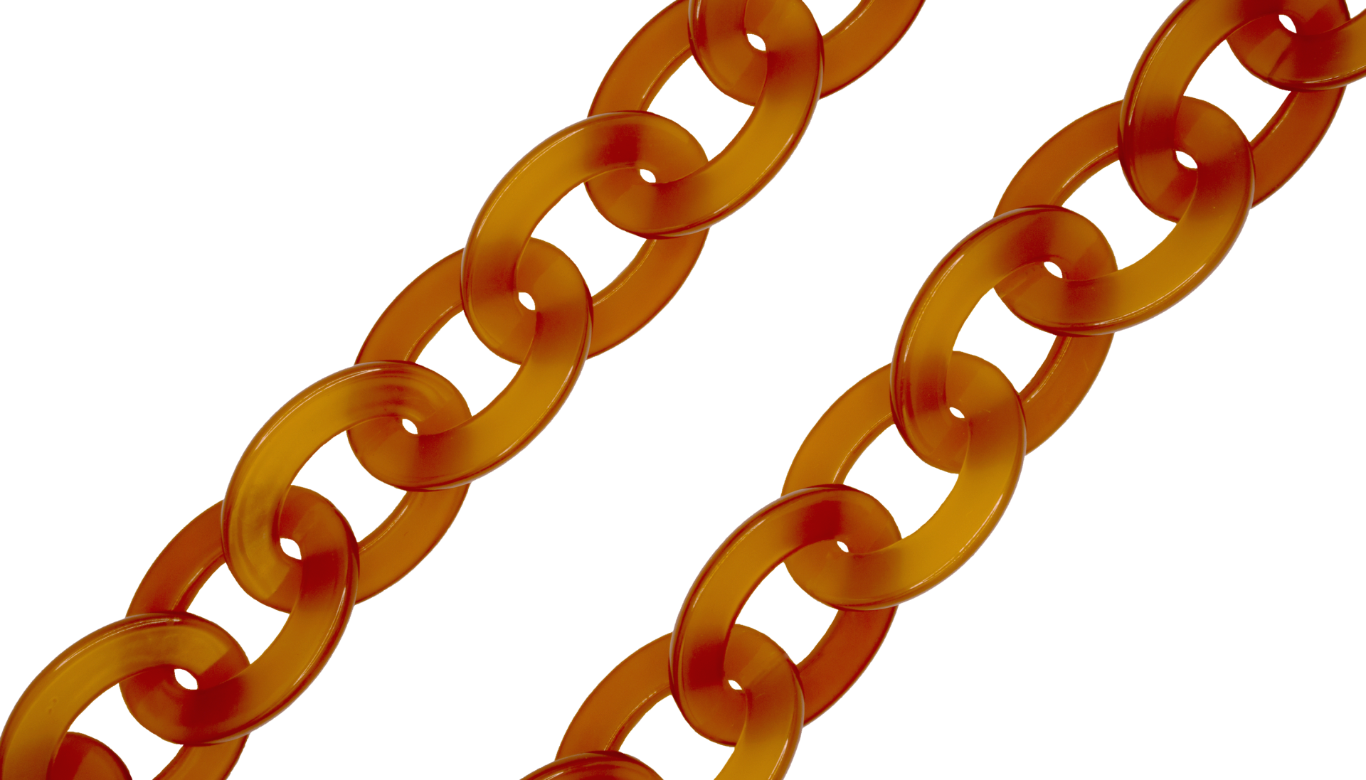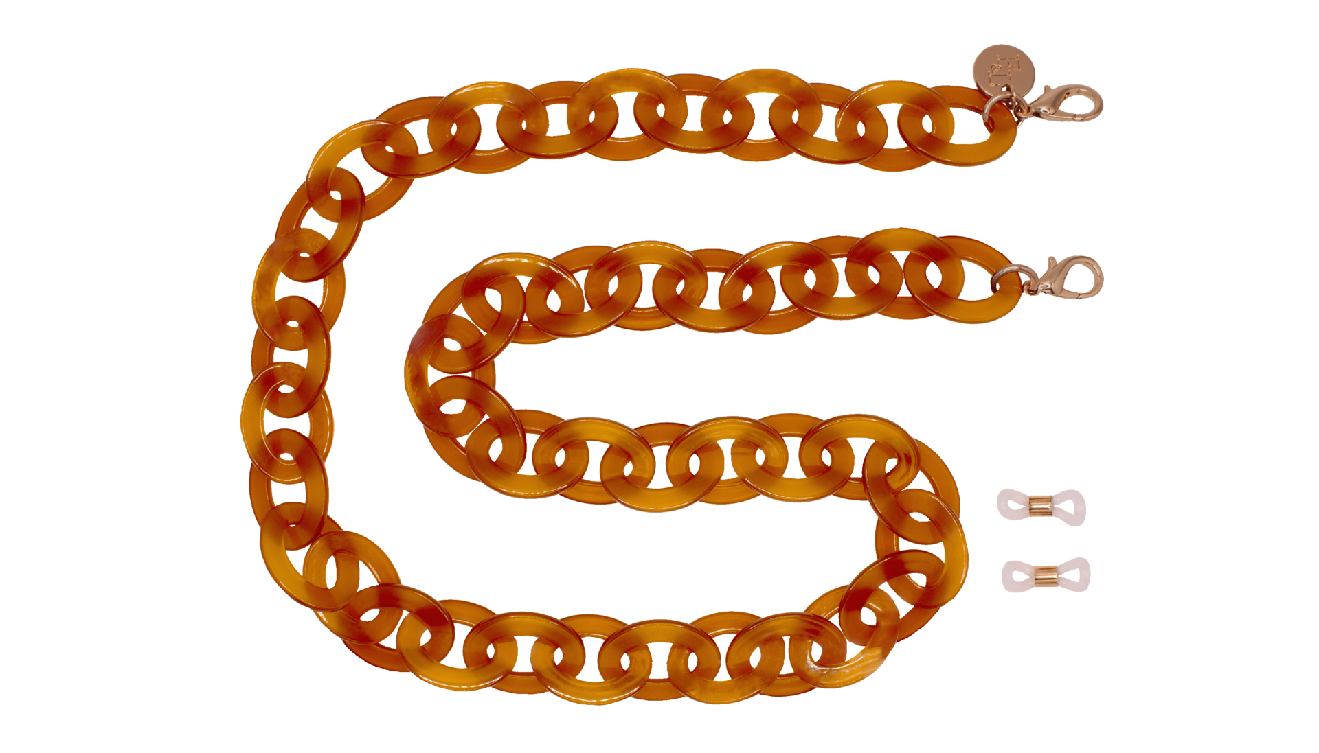 Are you familiar with our frame chains? They are now available in our own acetate colors as well. So, they fit with colors from our glasses! The acetate gives the chains a rich and luxurious appearance. And the wearing comfort of the light acetate is amazing. The Acetate Chains always come with a metal ring which you can attach to the lobster claws. You can easily hang your glasses through the metal ring, or you can attach the silicone loops to your glasses. Two in one!