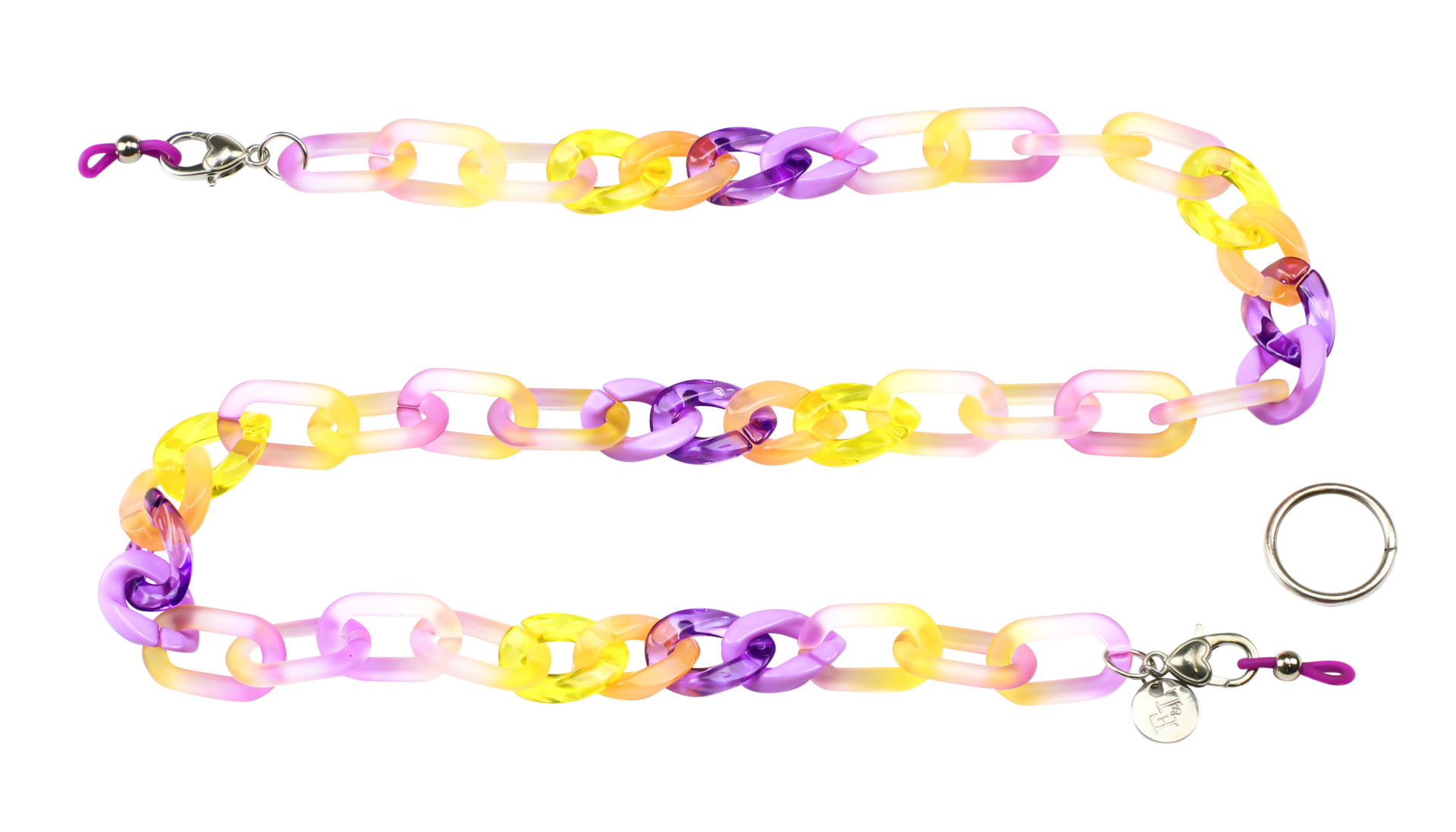 Trendy frame chain in a stunning color. Very light weighted and easy to transform into a necklace with an associated ring where you can hang a pair of glasses in. Beautiful and functional in one.Specifications