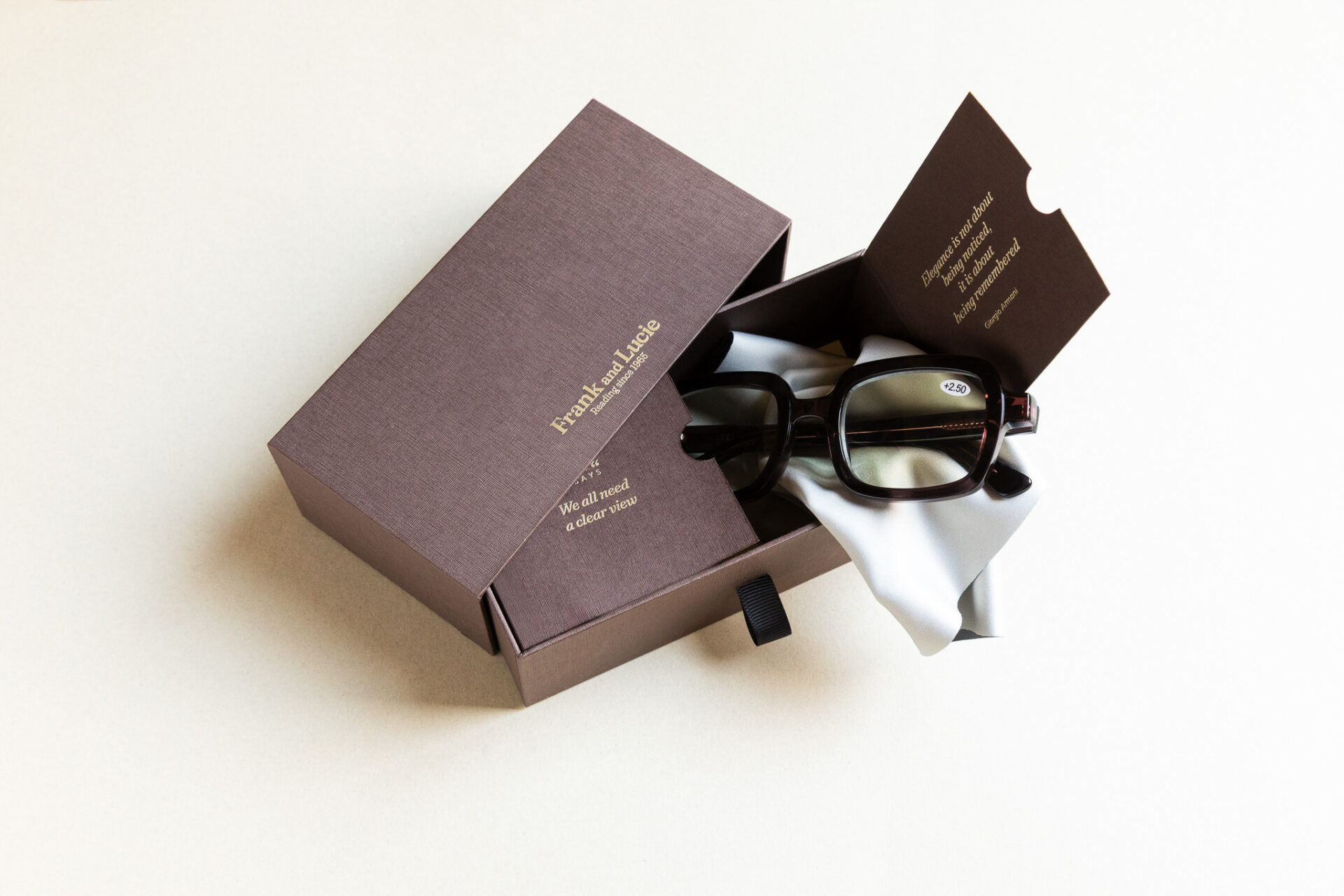 The Frank and Lucie Men’s Collection is a quiet tribute to the timeless elegance of Giorgio Armani. Bold yet understated frames crafted from premium acetate, with masculine silhouettes that feel both classic and modern. Models like Tributo, Aquila, Milano, Borgo and Giorgio come in rich, refined tones: the soft depth of Greyvanna, the subtle strength of Soft Ingreydient, the warmth of French Roast, and the creamy balance of Au Lait. Each pair includes a matching signature cleaning cloth and comes in a luxurious gift box.