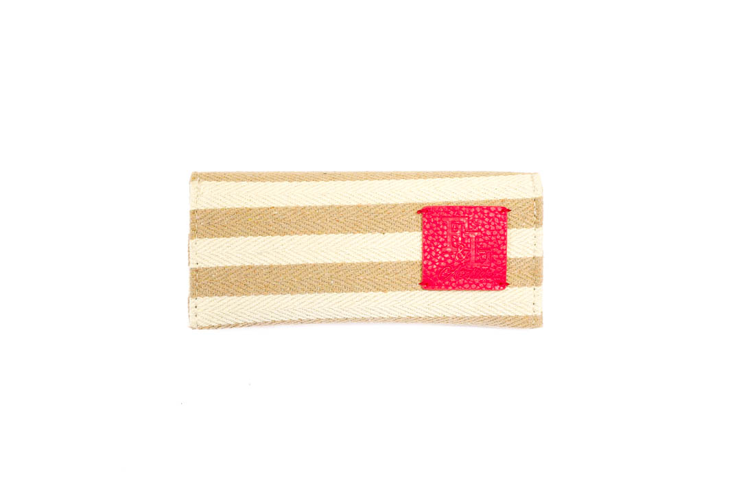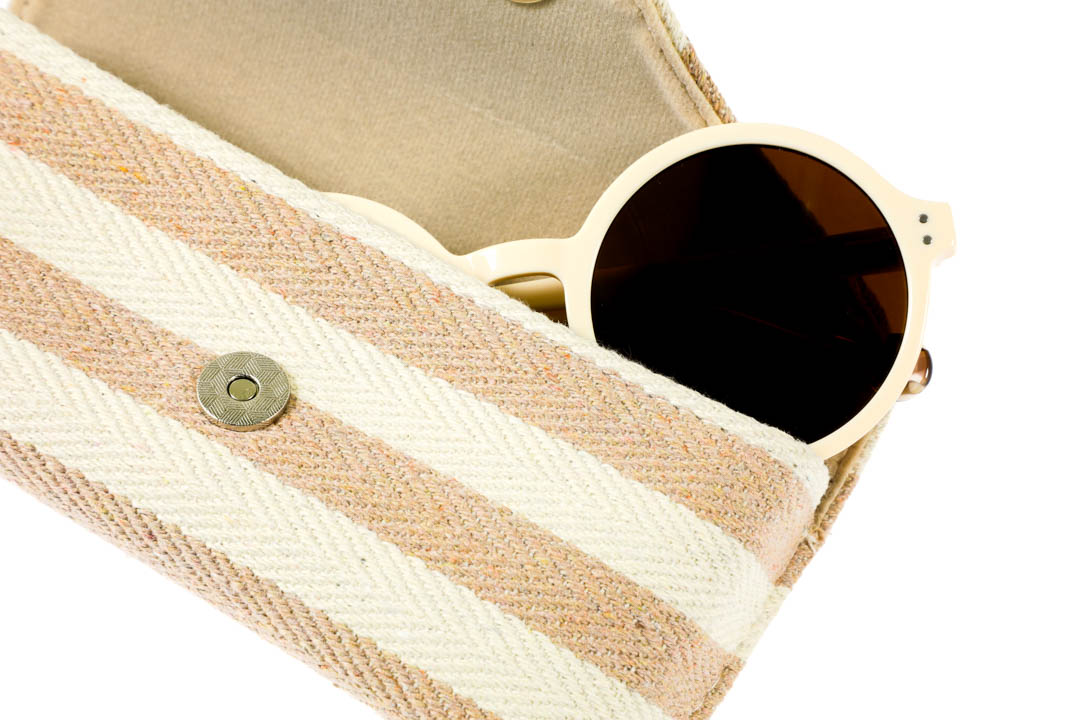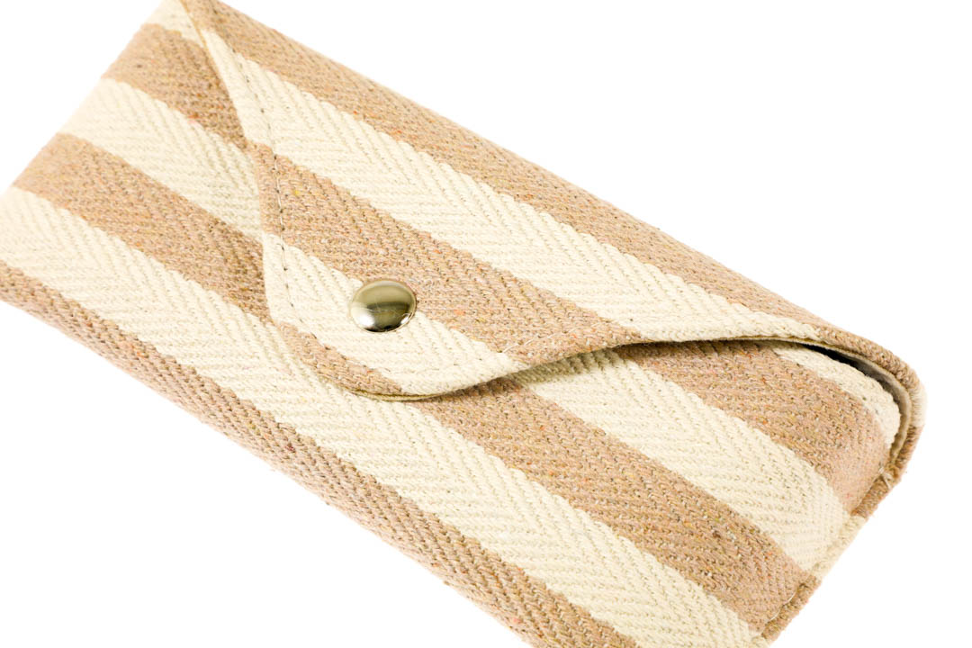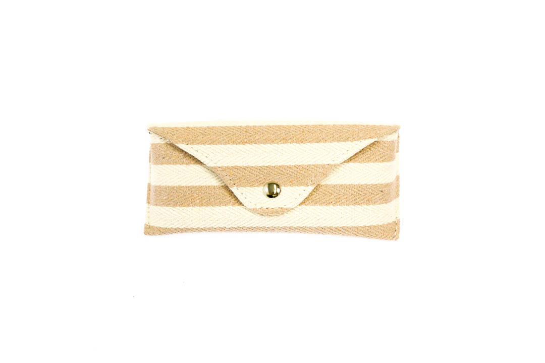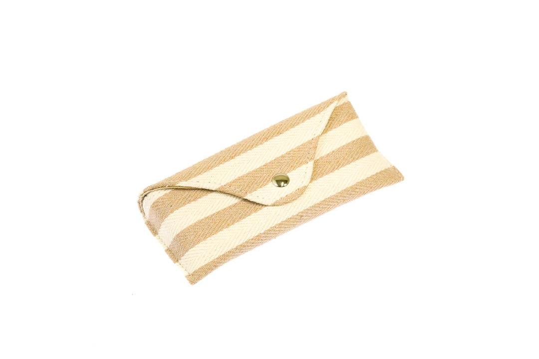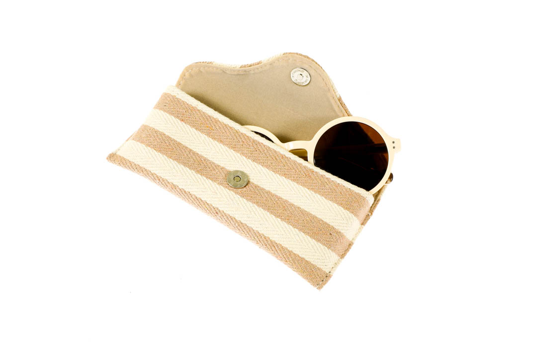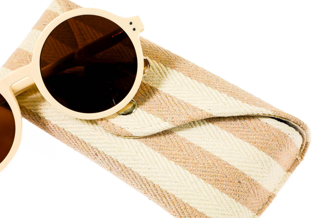 These hardcases are designed for our Atelier collection. They are made of high quality structured fabric, have the logo in pink on the backside and close easily with a button on the front. Available in black and in brown stripes. They come with a matching cleaning cloth.