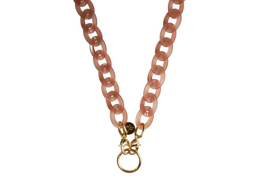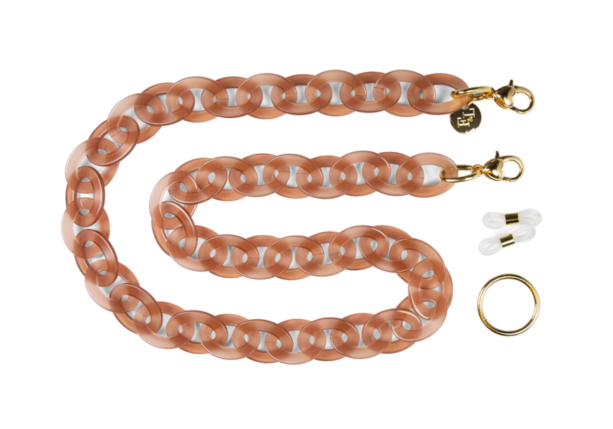 Are you familiar with our frame chains? They are now available in our own acetate colors as well. So, they fit with colors from our glasses! The acetate gives the chains a rich and luxurious appearance. And the wearing comfort of the light acetate is amazing. The Acetate Chains always come with a metal ring which you can attach to the lobster claws. You can easily hang your glasses through the metal ring, or you can attach the silicone loops to your glasses. Two in one!