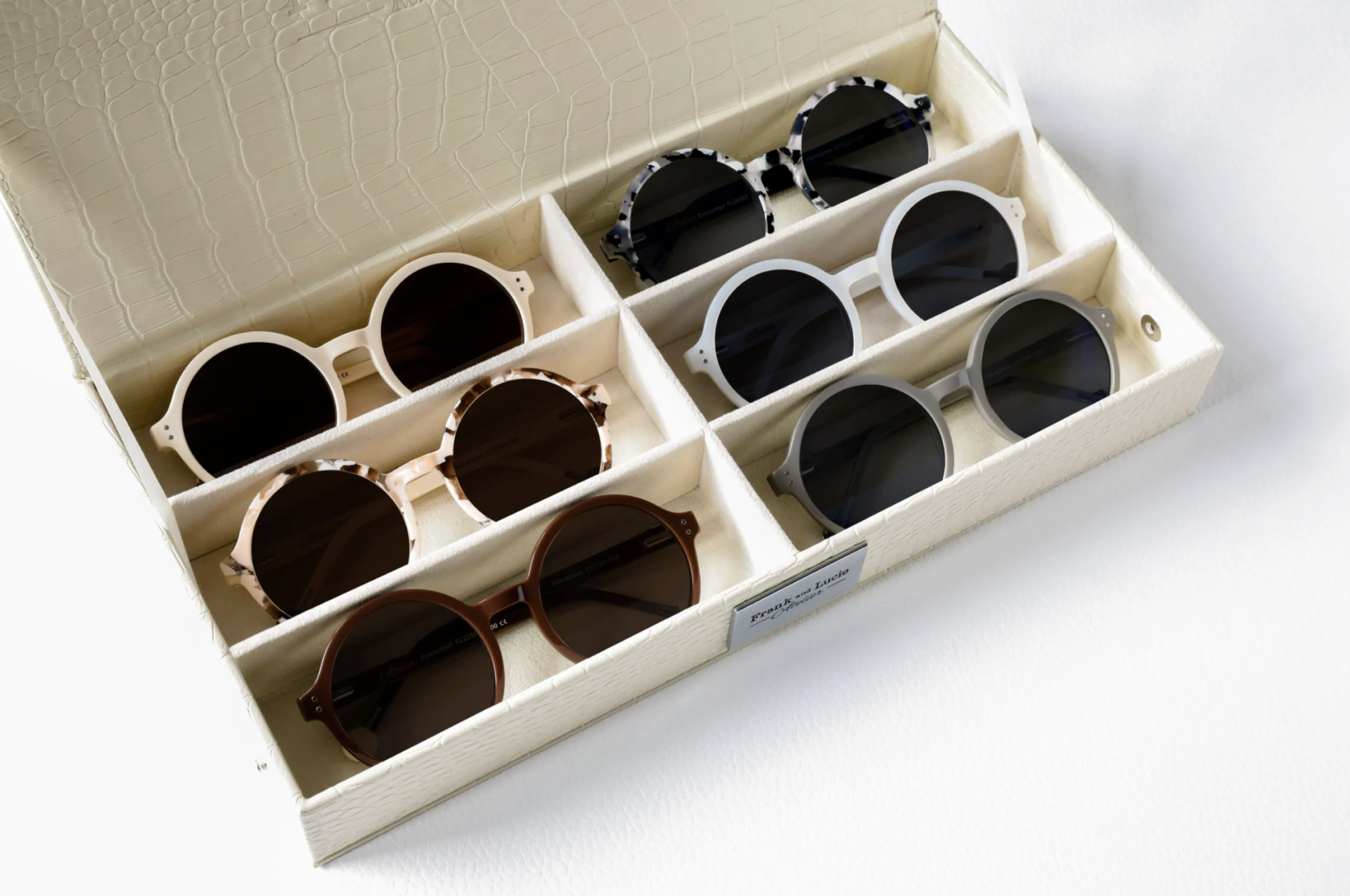 Lucie wants to give you, and your visitors, the full ‘unboxing’ experience. That is why she designed beautiful leatherlook boxes. The boxes have room for 6 glasses and feel luxurious due to the high-quality material. Even though it has a lot of space it easily fits on your counter. We have more colors available, check out the color swatches to see.